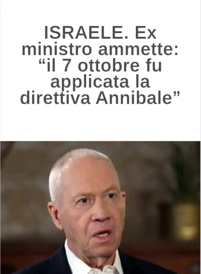 SÌ, l’ex Ministro della Difesa israeliano Yoav Gallant ha ammesso che la Direttiva Annibale fu utilizzata il 7 ottobre 2023 durante l’attacco di Hamas. In un’intervista con il Canale 12 israeliano, trasmessa il 6 febbraio 2025, Gallant ha confermato che l’ordine di applicare la direttiva fu dato “tatticamente in alcuni luoghi”, mentre in altri non fu impartito, definendo questa incoerenza “un problema”.